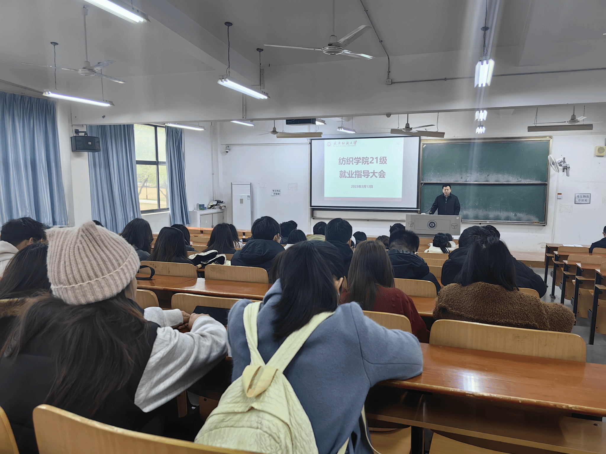 3月13日下午,芒果tv 于03-120教室召开芒果tv 2025届毕业生就业指导大会。会议由学院学生工作负责人赵亮主持,毕业生辅导员、全体求职毕业生参会。会议以党中央“稳就业”“保就业”决策部署为指导,结合当前就业形势与纺织行业特点,通过政策解读及分类指导,为毕业生冲刺求职关键期提供全方位支持。