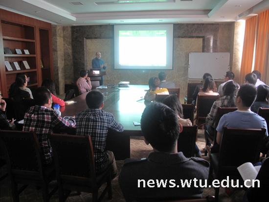 João Rodrigues(若昂•罗德里格斯)教授结合自己科研团队取得的成果介绍了马德拉大学的概况,并运用形象的图表和生动的比喻为大家分析了金属基树状大分子的结构、特点及其在生物医疗领域中的应用。João Rodrigues(若昂•罗德里格斯)教授还围绕海外留学、学业规划等热点话题与师生展开了互动交流。