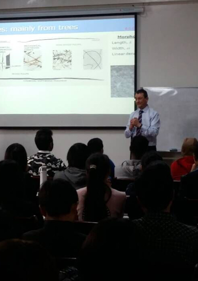 William Sampson教授介绍了纺织材料这门学科应注重“结构”、“加工”和“特性”这三大方面。其中,以纸材料为例详细讲解了材料的特性、发展趋势及应用。