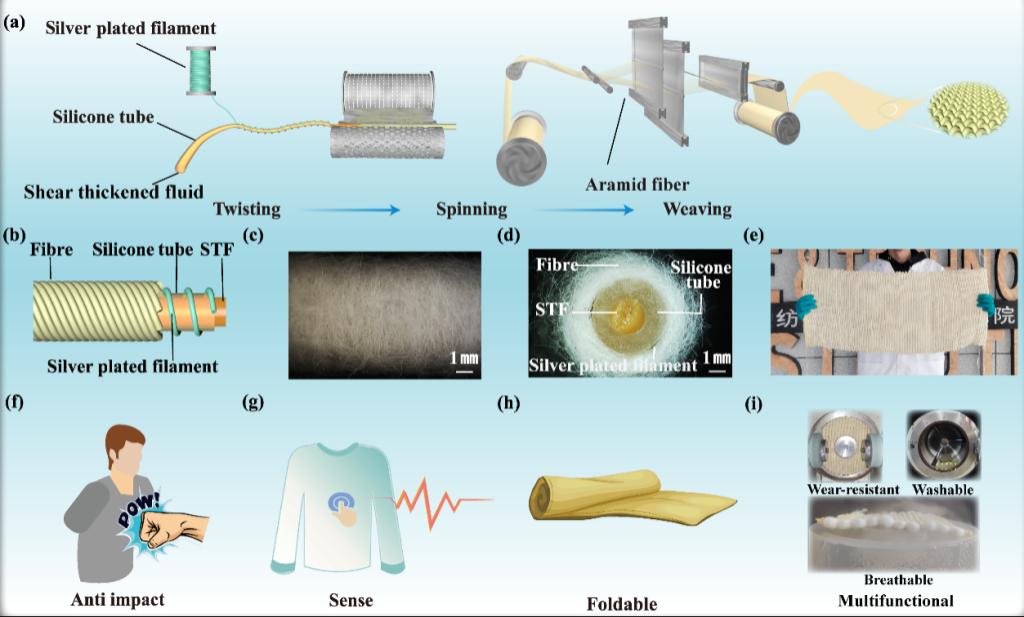 近年来,具有抗冲击和智能监测功能的智能可穿戴设备越来越受到人们的关注。剪切增稠材料因其吸能防护的优势,非常适用于抗冲击材料的制备。但是,目前通过浸渍、涂覆等方式制备的剪切增稠流体(STF)基复合防护纺织品,存在穿戴舒适性差、液体易泄漏、耐磨耐用性差等问题,因此将STF加工成兼备透气、亲肤、耐用的智能型抗冲击防护功能纺织品,难度大、挑战度高。为解决该加工技术难题,芒果tv