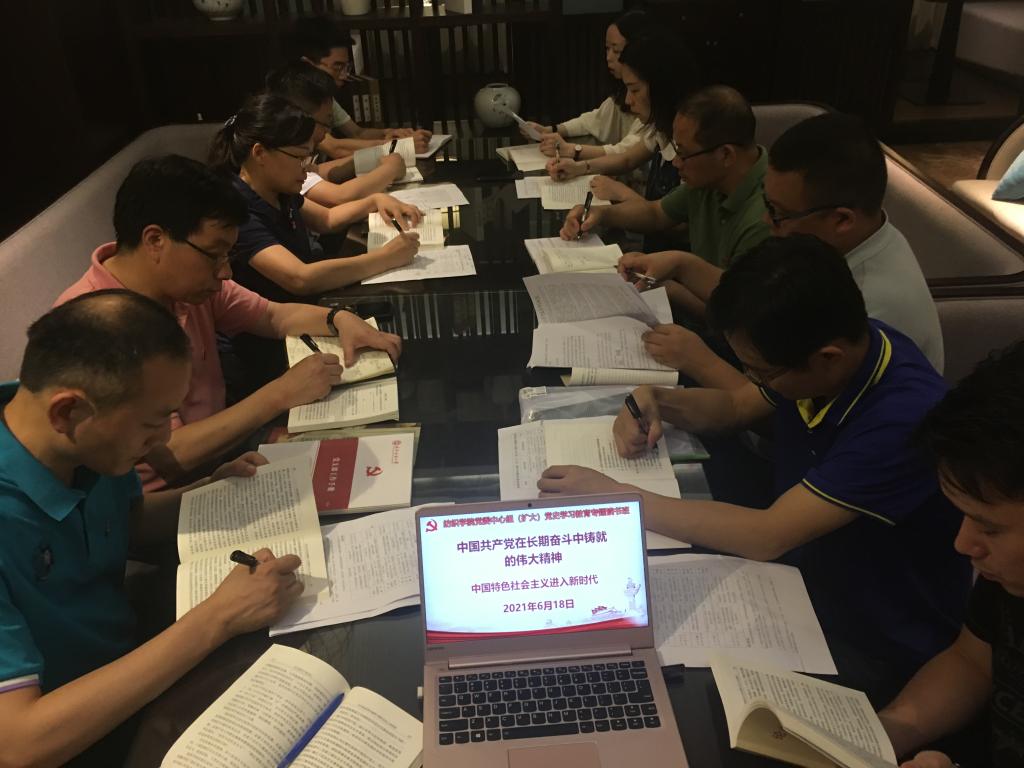 会上,蔡光明副院长领学《论中国共产党历史》文章《中国共产党的伟大革命精神跨越时空、永不过时》。张书记强调,近日来学院党委开展党史学习教育专题读书班集中研学,通过几期学习,我们系统回顾了党团结带领中国人民不懈奋斗的光辉历程、积累的宝贵经验、铸就的伟大精神。这是一场深刻的思想洗礼,我们要从党史学习教育中不断补足精神之钙,自觉扛起历史重任,牢记红色政权是从哪里来的、新中国是怎么建立起来的,倍加珍惜我们党开创的中国特色社会主义,坚定道路自信、理论自信、制度自信、文化自信。
