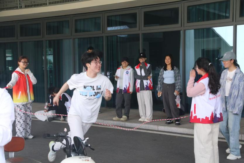 运动会以传统拔河项目拉开序幕。随着裁判一声哨响,参赛选手迅速就位,紧握长绳、奋力拼搏,场边观众呐喊助威,现场气氛热烈,瞬间点燃全场激情。在“八字长绳”环节,队员们配合默契,轻盈穿梭于翻飞的绳影之间,充分展现了团队协作的魅力。随后的五十米接力赛更是精彩纷呈,选手们以击掌为号,接力奔跑,矫健的身影在阳光下划出优美弧线,彰显青春的速度与激情。最后的“十人九足”项目将比赛推向高潮,队员们步伐一致、口号嘹亮,欢笑声与喝彩声此起彼伏,整个赛场洋溢着团结奋进的青春气息。