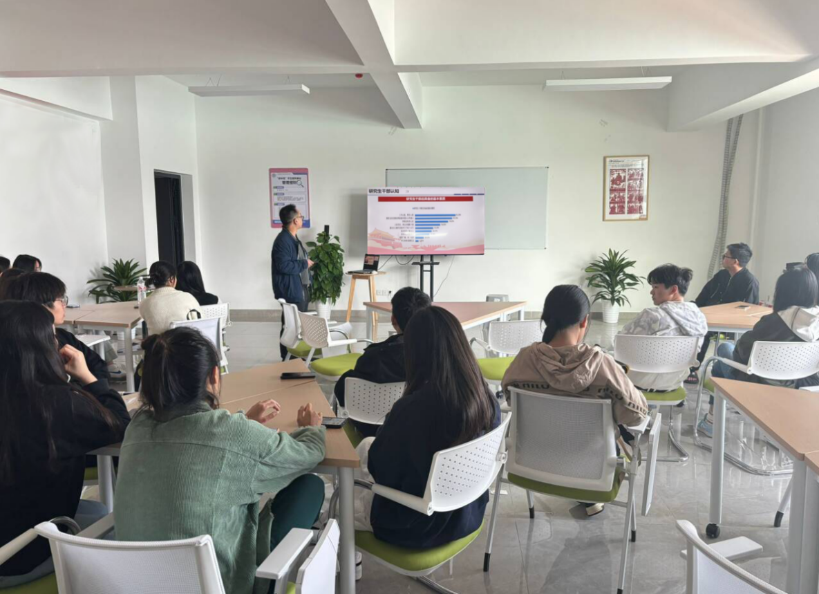梁祥云围绕角色动机、研究生干部角色、研究生干部角色期望、研究生干部角色实践等与大家进行了基本的解读。并就研究生综合能力与研究生干部成长经历的关系进行了一定的交流。梁祥云表示,希望大家能多去关注和思考人生不同阶段不同场景下的角色及其角色期望,激发自身成为优秀人才的内生动力。
