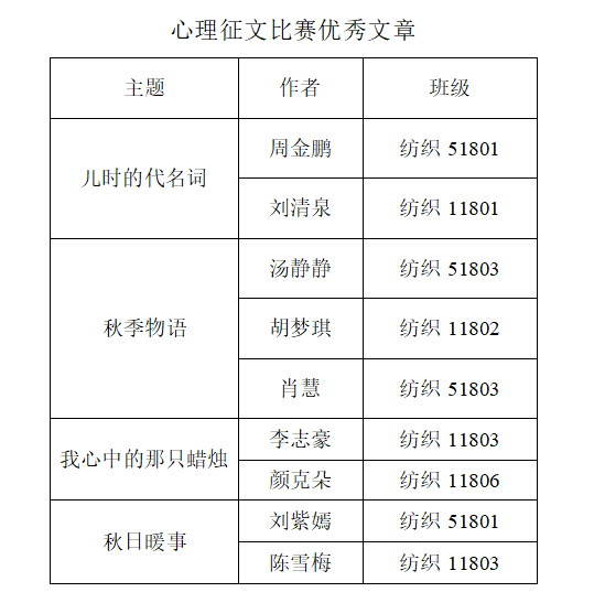 心理征文活动的举办,让同学们有了一个去倾诉的平台,也让同学们知道了别人内心的想法。总之,心理征文活动有助于调节心理压力、释放心理压力,对学生学习与成长有较大帮助。