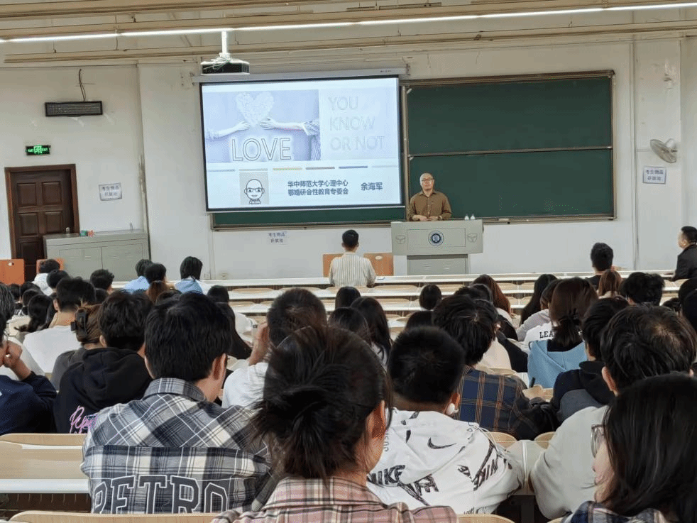 帮助同学们理解爱情的内涵,树立正确的恋爱观, 11月15日下午3点,我院邀请了临床与咨询心理学硕士、华中师范大学心理健康中心讲师余海军老师在03-T202举办了一场以“你应该知道但不知道的爱情”为主题的心理学讲座,此次讲座由学院学生工作负责人赵亮主持,全院各年级近两百多名学生参加。