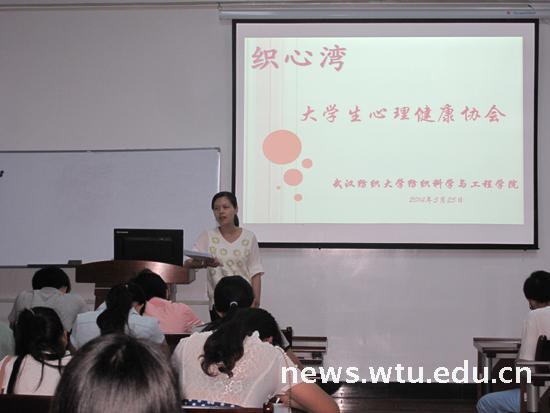 成立“织心湾”心理健康协会是我院大学生心理健康教育工作的重大举措,对于切实提高学院心理健康教育工作的针对性和实效性,着力培养大学生积极心理品质都具有重要意义。协会指导老师希望每位会员在这里能真正有所收获,并积极参与协会组织的系列特色活动,在提升自身心理素质的同时,热心帮助他人,使“织心湾”心理健康协会真正成为大家自助与互助的心灵家园。