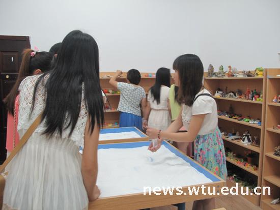 (协会成员参观校心理健康教育中心沙盘治疗室)