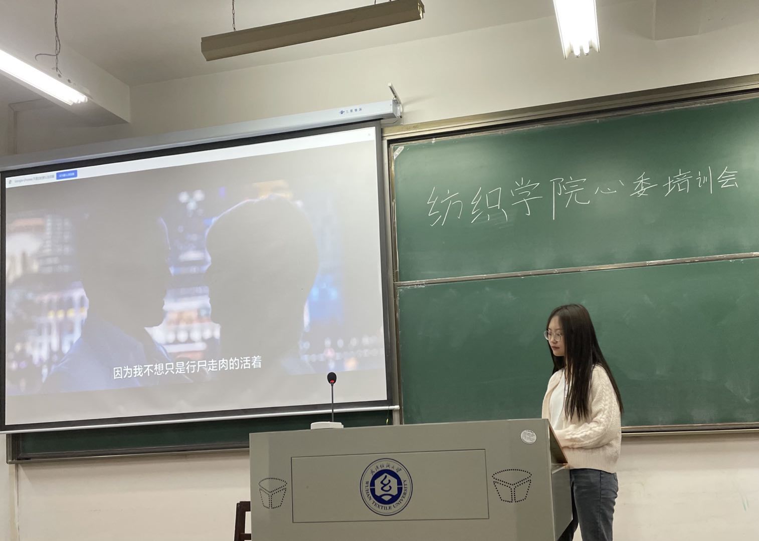 先是郑佳佳为大家介绍了消极情绪的危害及产生原因,用自己身边的真实事例为大家生动直观地阐明了消极情绪的可能产因及其对自身产生的影响。之后吕咏琳为大家分享了解决消极情绪的有效小建议,并带领各心委观看心理短视频。