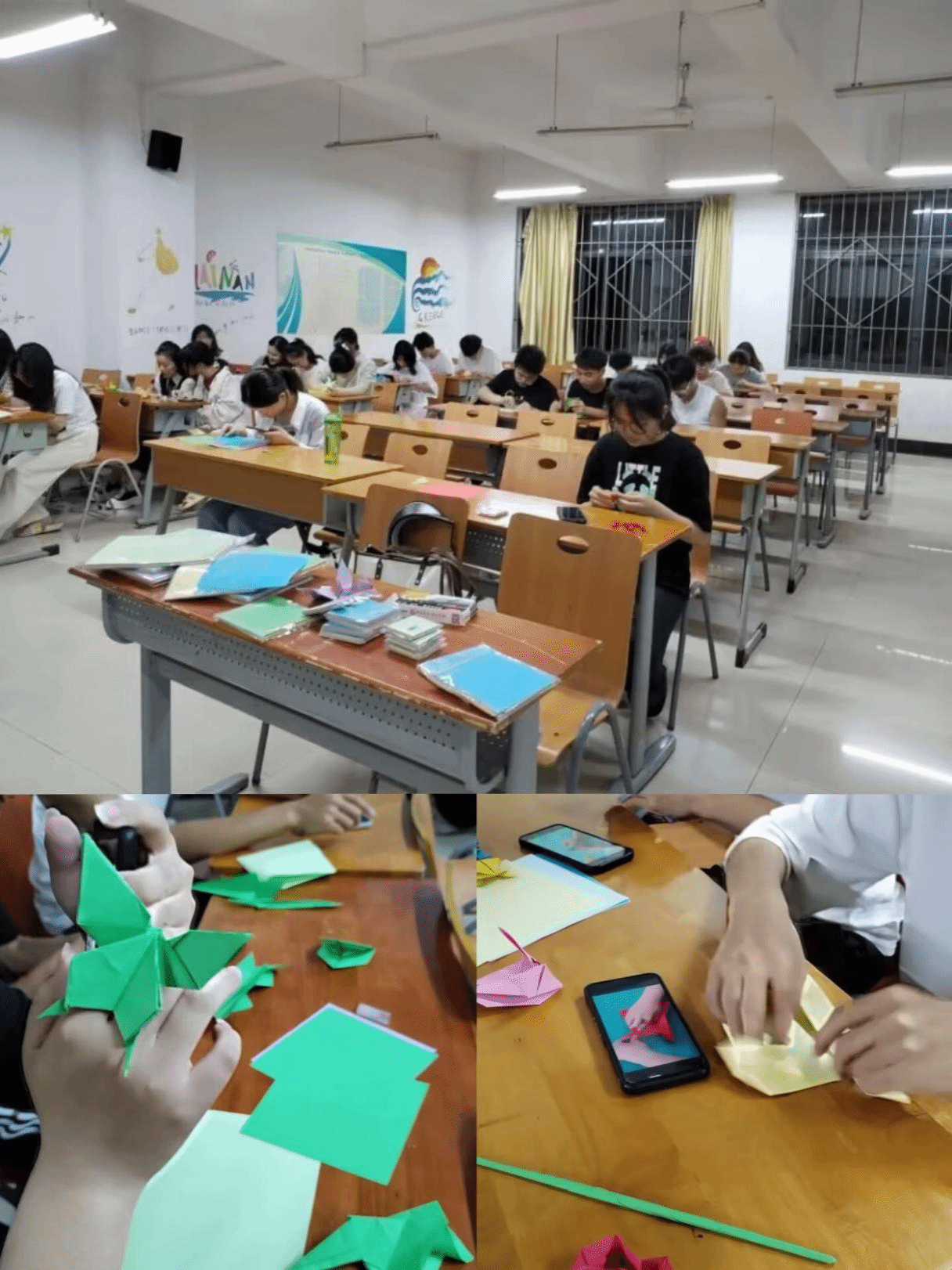 同学们将折纸当作桥梁,寄托自己的心愿和理想,以此帮助学生接近自己的目标,提升同学们的自制能力,疏解心理压力,增强自信心。