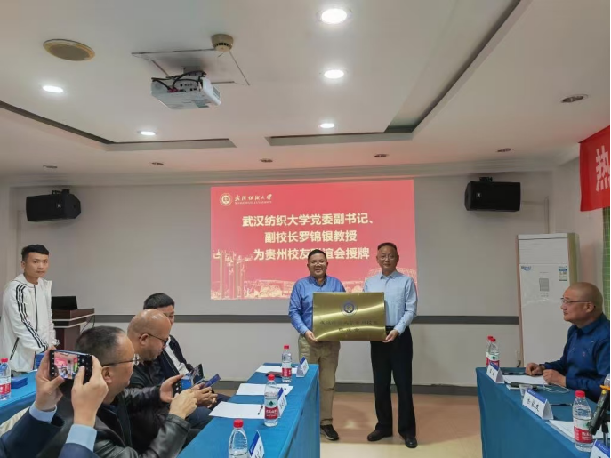 王金涛代表贵州校友联谊会接受学校党委副书记、副校长罗锦银授牌