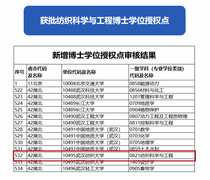 1.获批博士学位授权点,学科建设迈上新征程。纺织科学与工程博士学位授权点获批,纺织科学与工程学科连续两年稳居“软科世界一流学科排名”全球前三,学科建设水平持续攀升。