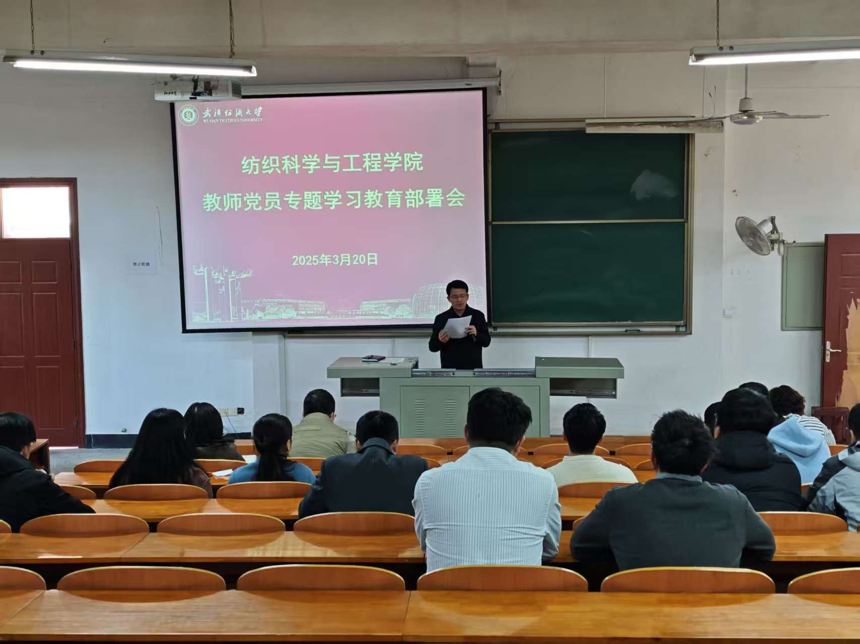 会上,朱张军以“提高站位,迎难而上,凝心聚力冲刺一流”为主题从全国两会基本情况介绍、湖北代表团和行业代表情况介绍、校长徐卫林院士相关提案、学校下一步重点工作、学院下一步工作思考等五个方面深入学习解读了全国两会精神,强调全院教职工要以全国两会精神为指引,厚植教育情怀,强化责任担当,在落实立德树人根本任务、服务学校“双一流”建设中争当“排头兵”。围绕学校重点工作部署,强调学院要主动融入推动内涵建设,学院党委从把方向、抓关键、促发展等方面发挥作用,按照新一轮科技革命和产业变革要求以及学校部署,积极筹备建设纺织新专业;抓好学院领导班子领导力和教师团队战斗力提升;丰富学院党建工作体系,强化引领,美化环境,细化管理,加强跟踪督办,确保重点工作稳步推进、取得实效。