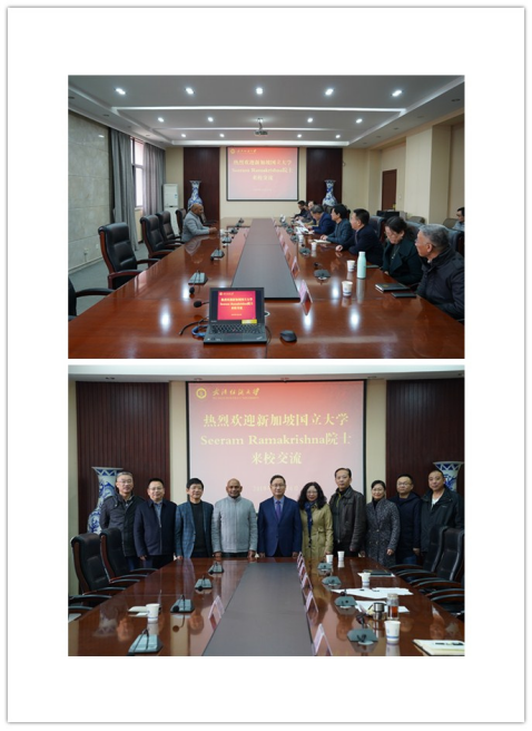 应学校邀请,新加坡国立大学Ramakrishna院士于2019年12月15日-17日来访我校,彭育园校长、姜明华副校长及芒果tv