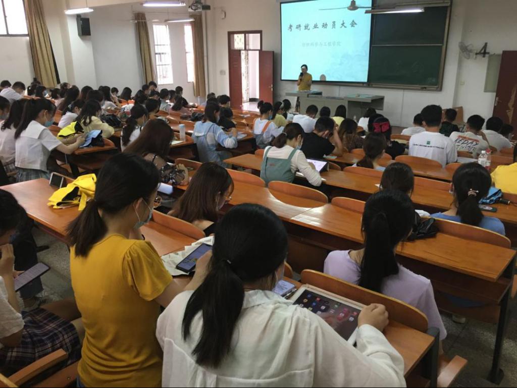 大四部分学生及学生干部代表在08-FT-101举行新学期安全会议和考研就业动员大会,学院党委张红鑫书记、张强副院长、陈海副书记、部分教师以及年级辅导员参会。