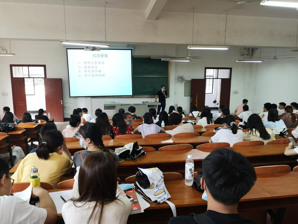 会上张书记分析了目前的就业和考研情况,倡导同学们积极备战考研,调整好就业心态;张强副院长为同学们作了考研动员,强调学院会积极创造条件为同学们考研复习提供相应的服务和指导;陈海副书记强调了返校后的安全问题,提醒大家注意身体健康,如果有体温异常的情况要及时上报;年级辅导员严蔷薇老师为大家讲述了大四各个时间节点的毕业生相关事宜,并为大家作了防电信诈骗的安全教育。