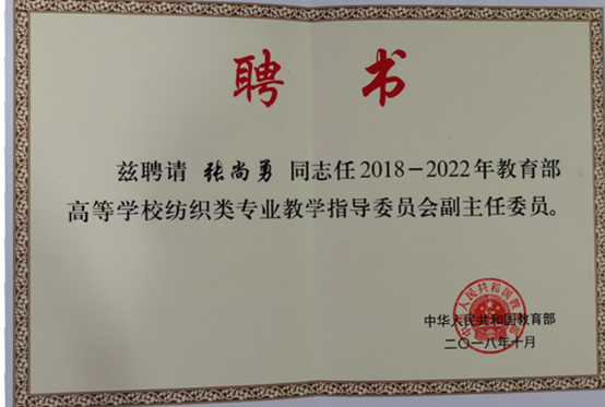 我院张尚勇教授当选新一届教育部高等学校纺织类专业教学指导委员会副主任