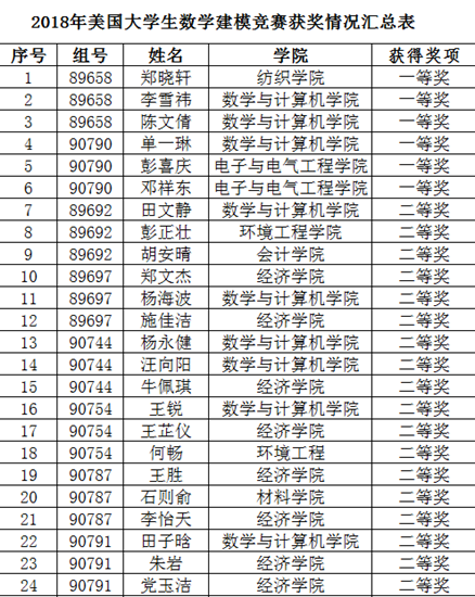 我校学子在美国大学生数学建模竞赛中荣获一等奖