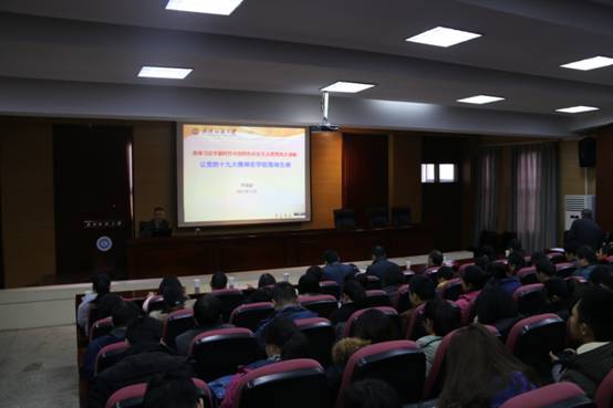 围绕如何引导党员干部和师生懂、弄通、做实党的十九大精神,让党的十九大精神在学校落地生根。罗锦银分怎么学、学什么、如何做等三个部分进行了深刻阐述。他指出要原原本本学、原汁原味学、带着问题学、联系实际学,持续深入学,学深悟透、融会贯通,学用结合,知行合一,真学真懂真信真用。要认真学习领会党的十九大的主题、主要成果、习近平新时代中国特色社会主义思想 、过去五年的历史性成就和历史性变革 、中国特色社会主义进入新时代 、我国社会主要矛盾的变化 、两个一百年奋斗目标的战略部署 、我国经济社会发展重大战略部署 、坚定不移推进全面从严治党。他指出保证全党服从中央,坚持党中央权威和集中统一领导,是党的政治建设的首要任务。要坚定执行党的政治路线,严格遵守政治纪律和政治规矩,牢固树立政治意识、大局意识、核心意识、看齐意识,在政治立场、政治方向、政治原则、政治道路上同以习近平同志为核心的党中央保持高度一致,自觉维护以习近平同志为核心的党中央权威和集中统一领导,坚定自觉地把以习近平同志为核心的党中央决策部署落到实处