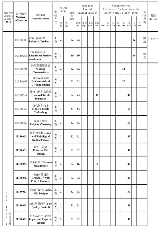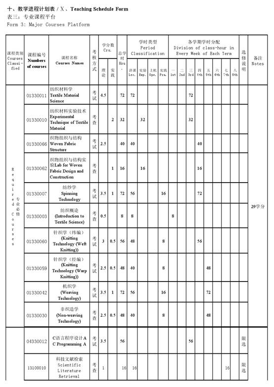 纺织工程专业本科培养方案