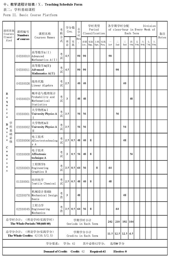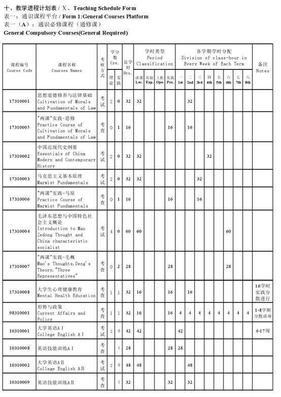 Military Training, Social Practice, Professional Course Experiment, Professional Course Cognition Practice, Engineering training I, Production Practice, Academic Papers, Course Exercise of Mechanical Design, Professional Course Exercise, Course Design of C Programming (A), Graduation Practice, Graduation Design Project (Thesis). ⅠⅡⅢⅣⅤⅥⅦⅧⅨⅩ
