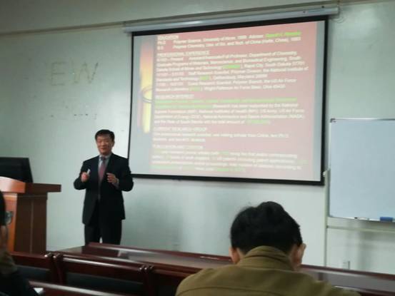 10月16日和17日,美国南达科他州矿业与技术大学冯浩教授来我校做静电纺碳纳米纤维前沿进展的讲座,我校纺织、机械、材料等专业师生参加讲座,并与冯教授就静电纺研究的热点问题进行学术交流。
