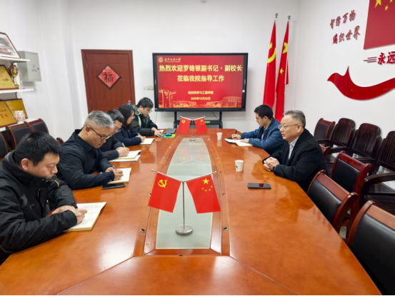 调研基层党建工作,就学院高质量发展进行指导,强调要坚持“一融双高”,统筹发展与安全,系统做好学院党的建设、文化建设、内涵建设、平安建设等工作,强基固本、争创一流,党委组织部有关负责人陪同。