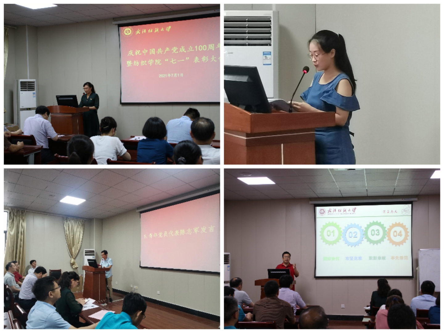 老党员代表武继松老师重温入党志愿书,结合人生经历,饱含激情地表达了对党的挚爱,对光荣岁月的缅怀致敬,对学院未来发展的无限期望。青年党员代表、校优秀党务工作者获得者陈志军在回顾初心中表明了接过接力棒,用心做好学院工作的信心和决心。学生党员代表毛菊红表示,将不负韶华,继续努,以实际行动践行党员的义务和使命。