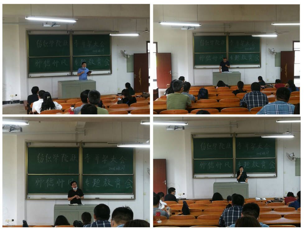 8月27日上午,学院在8F-T101召开了秋季开学教职工大会暨师风师德专题培训会。本次会议由院长张如全主持,学院教职员工按照防疫要求参加会议,为新学期各项工作的开展指明方向。