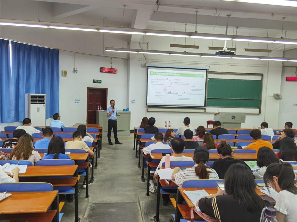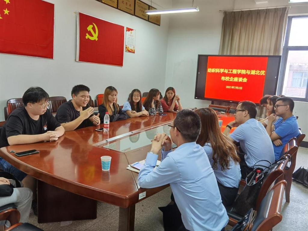 2021年7月2日,湖北优布非织造有限公司 张维总经理至芒果tv 开展“纺粘长丝针刺非织造胎基布的发展概况”的主体讲座。讲座内容就纺粘长丝针刺非织造生产线的设计、针刺非织造胎基布的后整理、非织造胎基布的应用及优布公司发展历程四大部分展开。讲座后,张总携带公司团队人员与非织及纺织专业学生就工作规划、职业发展等方面开展了座谈讨论。