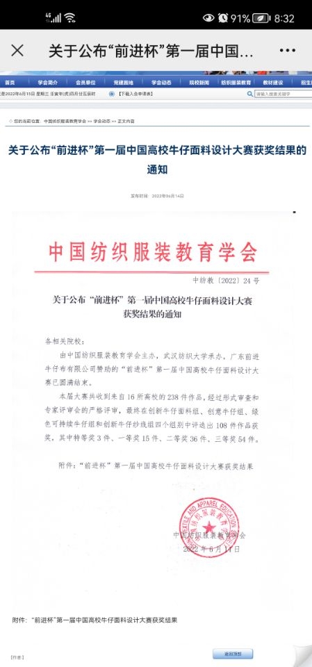 学承办、广东前进牛仔布有限公司赞助的“前进杯”第一届中国高校牛仔面料设计大赛于我校成功举办。中国纺织服装教育学会常务副会长倪阳生,教育部纺织类专业教指委主任、东华大学郁崇文教授,教育部纺织类专业教指委秘书长、东华大学郭建生教授,广东前进牛仔布有限公司总经理王宗文,芒果tv
