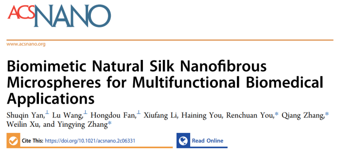 该工作以“Biomimetic Natural Silk Nanofibrous Microspheres for Multifunctional Biomedical Applications”为题发表在《ACS Nano》上,通讯作者为芒果tv