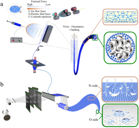 传统纺纱用纤维微米级的直径限制了纱线加捻纤维之间的极限粘聚力,静电纺丝得到的纳米纤维具有较大的比表面积、较高的表面能和大量的活性中心,然而,纳米纤维直径超细、绝对强度低、耐磨性差,限制了纳米纤维的工业化纺织加工应用。近日芒果tv