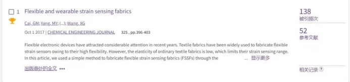 近期,根据ESI(基本科学指标数据库)最新数据显示,我院蔡光明教授2017年发表于化工领域TOP期刊Chemical Engineering Journal的研究成果《Flexible and wearable strain sensing fabrics》入选了由Web of Science识别的高被引论文。该论文以芒果tv