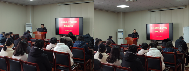 院长蔡光明传达新学期中层干部会议精神,明确指出2023年学校重点聚焦于校容校貌改善、重点抓好博士点申报、抓紧抓实高层次人才引育和团队建设、持续深化学术生态建设等十一个方面的工作。同时,蔡院长结合学院专业特色,从博士点申报、高端人才引进、学科专业建设、学术生态建设等方面对新学期各项工作进行安排部署,蔡院长强调,学院2023年应围绕学校重点工作,找准方向,抓好“一流学科”建设机会,推动学院建设,落实博士点申报工作和“一流学科”建设相关任务,做到“人人有方向,人人有目标”,全院上下要凝心聚力、勇于担当,力争实现各项事业的全面突破。