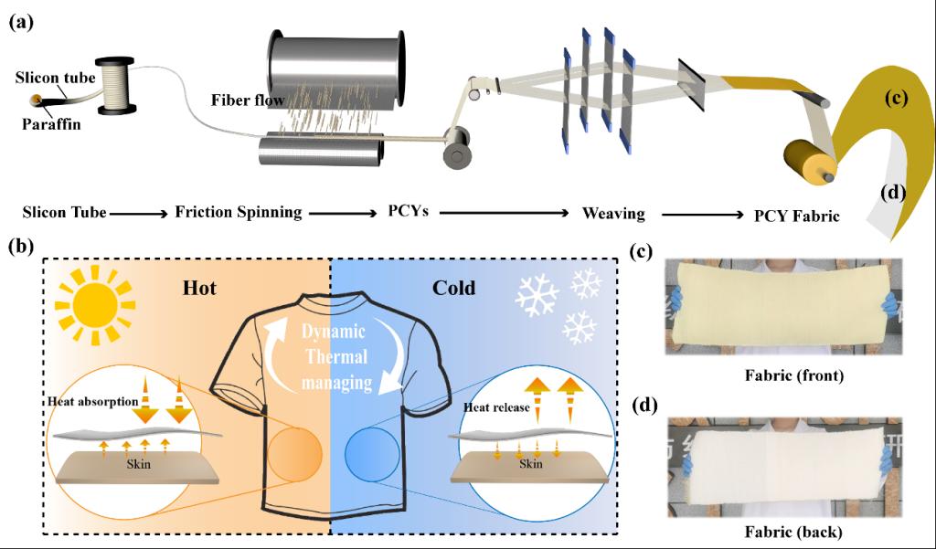 学徐卫林院士团队的夏治刚教授课题组,携手华中科技大学苏彬教授,创新提出液流纺制备一种基于石蜡的包芯纱(图1),实现了热管理纱线的批量化生产,用于极端温度和热防护。