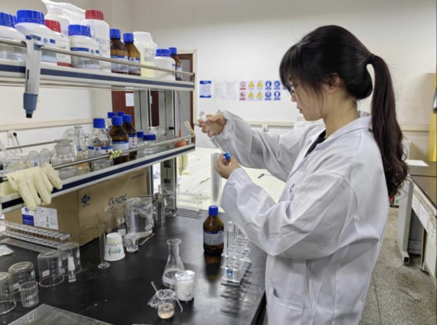 大二上学期开始真正系统性的接触专业课程,眼前的一切知识都十分令她着迷。得益于专业课老师的悉心教导,她开始在专业知识领域一点点摸索。纺织材料学课堂上,她认真听讲,汲取专业知识。课下,她便进入实验室跟随导师进行实验研究,参加比赛。专业知识的薄弱以及实验操作的失败并没有让她退缩,反而激发了她坚韧的品格,锻炼了她的耐心。最终,她在纺材期末考试中取得了班级第一的专业课成绩,在专业比赛中也获得了第一份奖项。后来,每学习一门新的课程,她都把从纺材获得的鼓舞转移到新的课程上,并且积极参加其他专业科研赛事。一共获得第九届金三发非织造材料开发与应用全国三等奖,获得第一届前进杯牛仔面料设计大赛全国一等奖、全国三等奖,获得第十三届红绿蓝杯面料设计大赛全国三等奖。大学四年成绩一直名列前茅,专业必修课平均绩点4.25,获得国家励志奖学金和校级奖学金等荣誉。