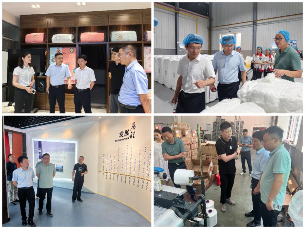 党委书记朱张军、院长蔡光明一行前往虹星桥镇、夹浦镇等4家纺织企业,了解企业生产流程、销售方式、人员储备,对企业发展进行全方位感知与指导。