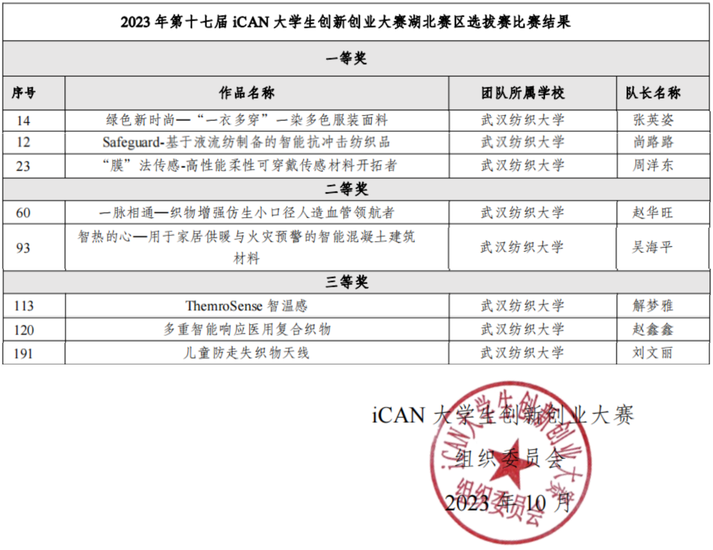 10月19日,iCAN大学生创新创业大赛组织委员会发布了《关于公布第十七届iCAN大学生创新创业大赛湖北赛区选拔赛结果的通知》(组委会发[2023]62号),我院夏治刚、于志财、庄燕、范玲玲、李岱祺、程德山等老师指导的团队表现不俗,获得省一等奖3个,省二等奖2个,省三等奖3个,成绩斐然!