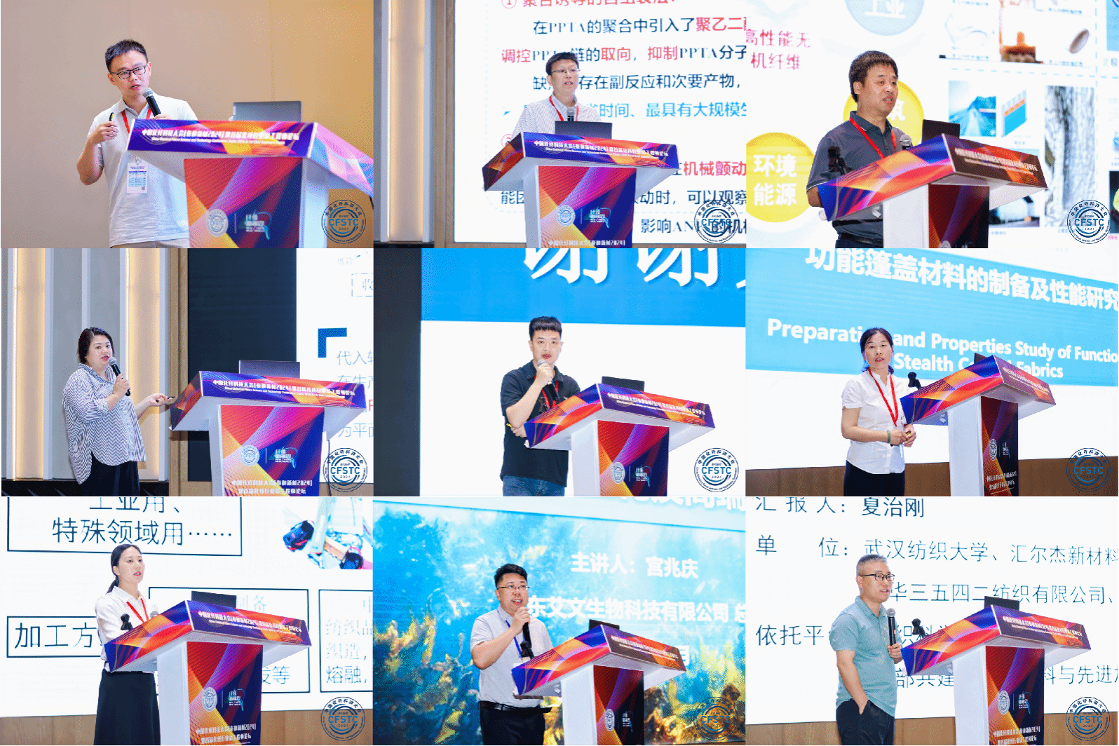 周熠、于志财教授、李文斌、龚小舟、张文、邹汉涛、艾丽、夏治刚共8位教师及校友宫兆庆依次分享了在特殊装备特种防控、功能纺织品、产业用纺织品领域的科研成果和应用。