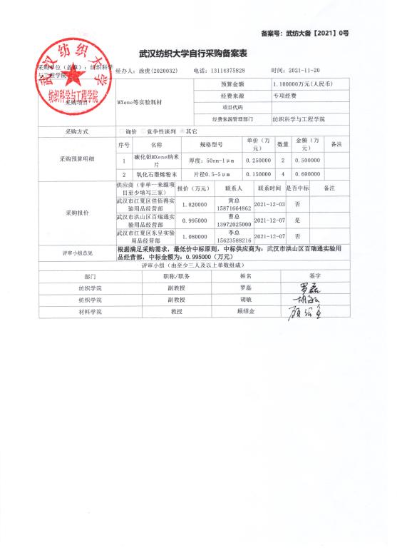 关于MXene等实验耗材的公示