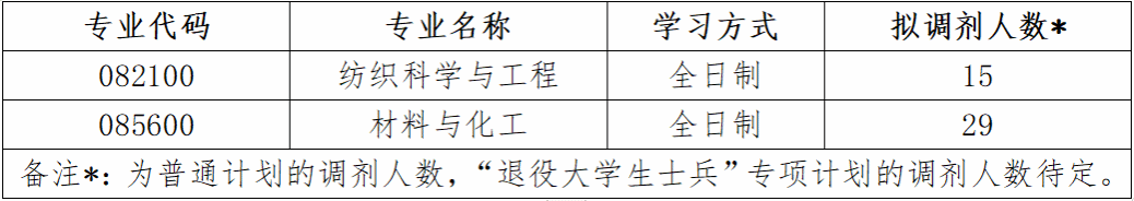 (1)一志愿报考纺织科学与工程、材料科学与工程、化学工程与工艺、化学、机械等相关专业均可调剂。