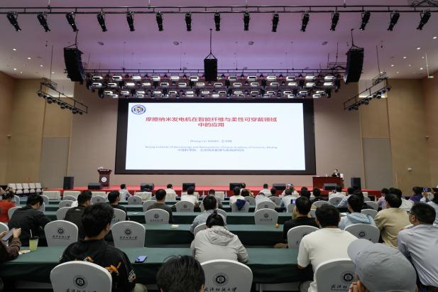 授聘仪式后,王中林院士为我校师生带来题为《摩擦纳米发电机在纤维纺织中的应用》的学术报告。他详细讲解了纺织基摩擦纳米发电机(Tex-TENG)的基本原理与应用前景,重点说明了该技术能够高效捕获人体运动机械能并转化为电能,实现自驱动能源与传感一体化,为智能穿戴、人机交互及绿色能源提供了创新解决方案。他强调,随着物联网、人工智能和可穿戴技术的迅速发展,智能纺织已步入功能化与智能化深度融合的新阶段。与会教师纷纷表示,报告内容十分具有启发性,为个人科研与发展提供了新思路。