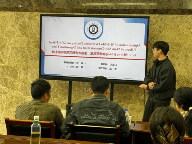 本次论坛汇聚 6 位博士研究生,围绕纺织科学、材料工程、生物医用等前沿方向开展学术汇报:齐杭杭分享酶法剥皮调控苎麻纤维结构研究进展;赵华旺介绍定向胶原 / CMC-Ca 复合支架在快速止血领域的应用;尚路路阐述分级液流纺丝制备透气高抗冲击 STF 基 TENG 的智能防护应用;施雯雯展示超高拉伸、耐用透明聚氨酯纤维基光致发光智能纺织品;胡泽馗解析主盐浓度与沉积时间对 GCr15 钢表面 Ni-B-Mo 化学镀层的影响;陈钰莹汇报强韧、粘附、高透明、防冻 PVA 水凝胶在应变传感器中的研究。每位选手在 8 分钟内,清晰阐述课题背景、核心内容、创新亮点与未来规划,展现出扎实的科研素养与前沿视野。