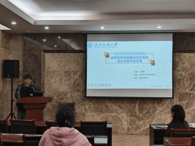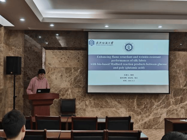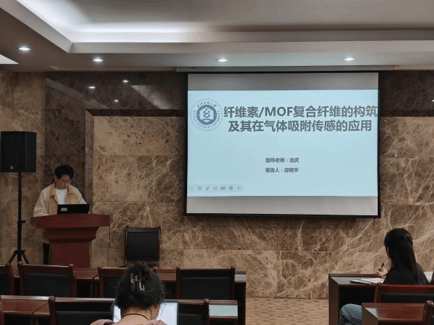 论坛上,力一颖、黄建、陈莹、邵晓宇、宋瑶和吴烨六位同学依次介绍了自己的研究课题和目前取得的研究进展,并分享了自己的科研经验。主讲同学的研究课题包括荧光碳量子点、丝素粉体、葡萄糖与聚谷氨酸生物基美拉德反应产物、纤维素/MOF复合纤维、玄武岩三维机织管状复合材料、免烫棉织物,契合了“纺织新材料及绿色加工”主题,代表了学院最新研究进展,参会人员积极提出问题和建议,营造了良好的学术氛围。