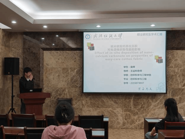 首先,曾贝妮老师介绍了举办研究生论坛的主旨和意义,同时宣布第三期“纺织新材料及绿色加工”研究生论坛开始。