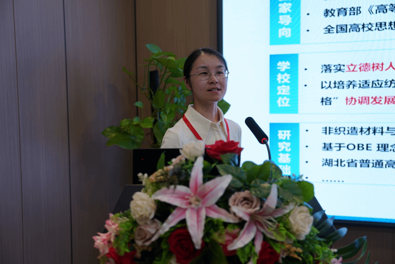 胡敏在本次会议中做了题为“思政教育融入非织造专业人才培养的探索与实践”报告,主要从:融合课程思政的人才培养目标、“体验式”课程思政教学模式、课程思政长效运行机制和课程思政教学实践案例四个方面进行汇报交流。