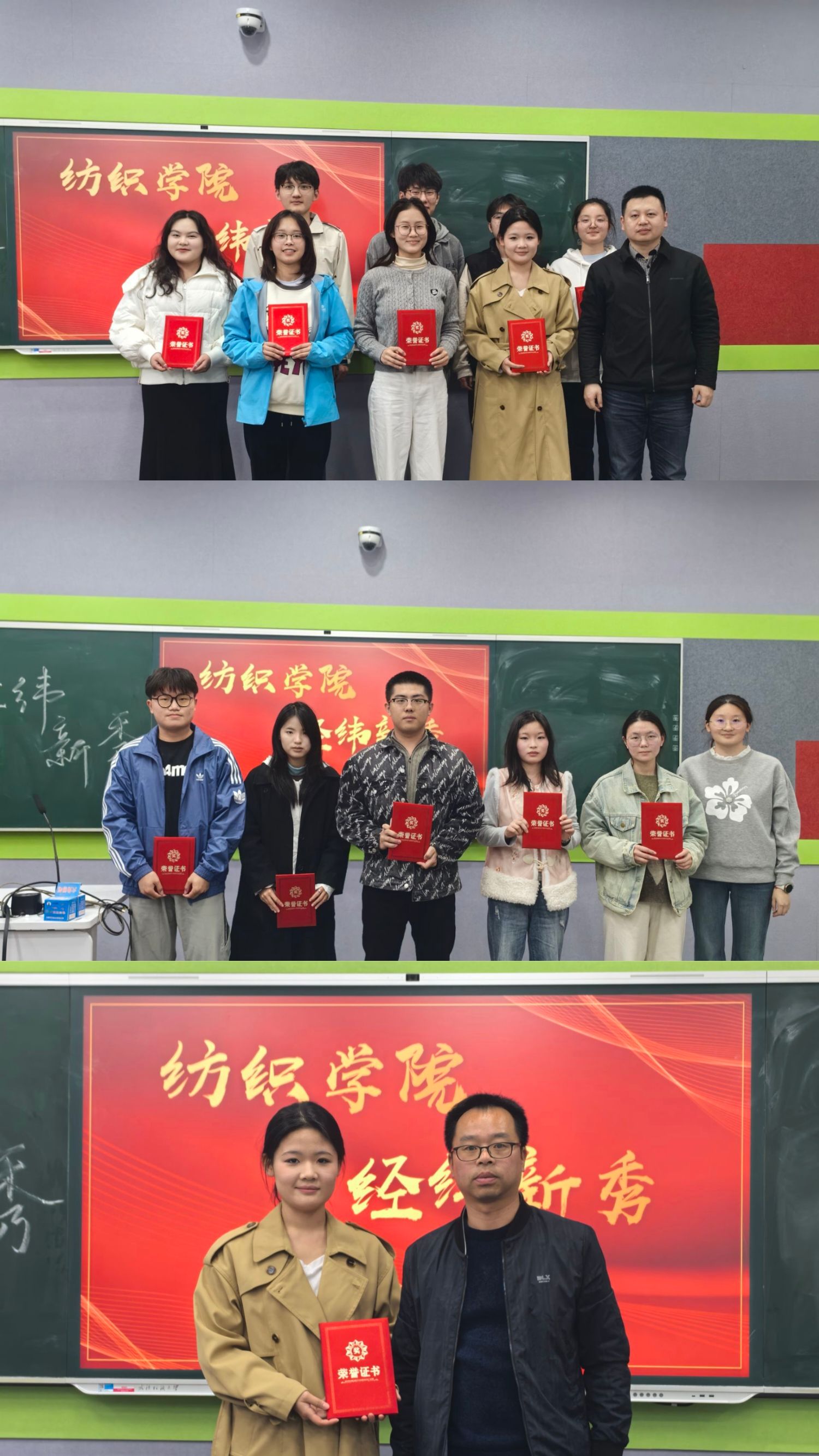 “经纬新秀”称号,王思媛等5名同学获得“新秀”优秀奖,唐予言获得“最佳人气奖”。赵亮老师表示:“‘经纬新秀’获奖学子的成长轨迹生动体现了学院育人理念的实践成果,既有智育排名蝉联年级第一的‘学术标杆’,也有手握10余项国家级省级竞赛大奖的‘科研先锋’,更有累计志愿服务超400小时的‘公益之星’,生动诠释了新时代纺织人的全面发展理念,彰显了新时代纺织学子的创新担当。”