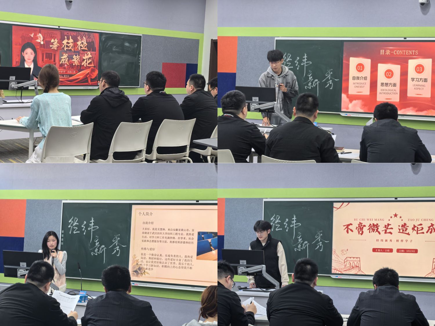第四届“榜样学子·经纬新秀”评选活动在9号教学楼206智慧教室顺利举行。本次活动以“五育并举树标杆,经纬青春绽芳华”为主题,聚焦德智体美劳全面发展的人才培养目标,通过选拔综合素质突出的优秀学子,发挥榜样引领作用。纺织学院全体辅导员出席活动并担任评委。