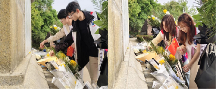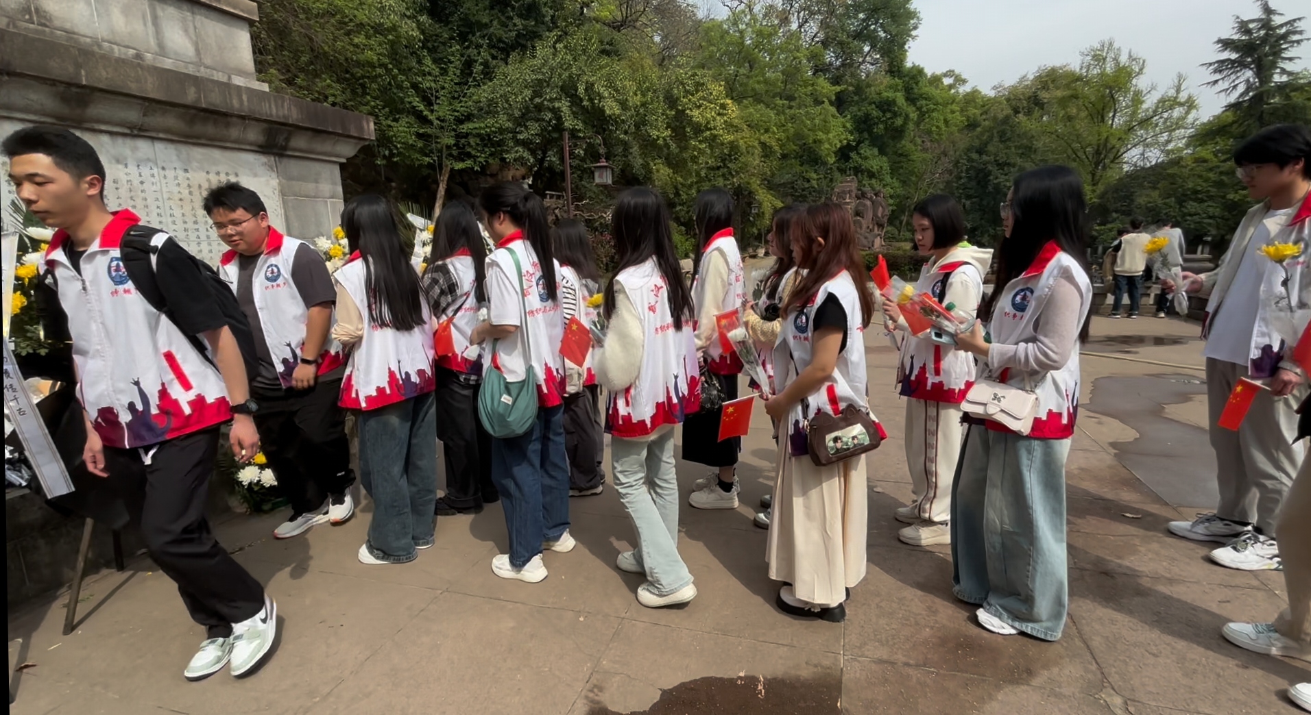 全体学生依次走向墓碑,献上手中的鲜花。一朵朵鲜花承载着大家对革命先烈的无限崇敬与感恩,同学们用这质朴的方式,向长眠于此的英烈们表达最诚挚的敬意,告慰他们的在天之灵。