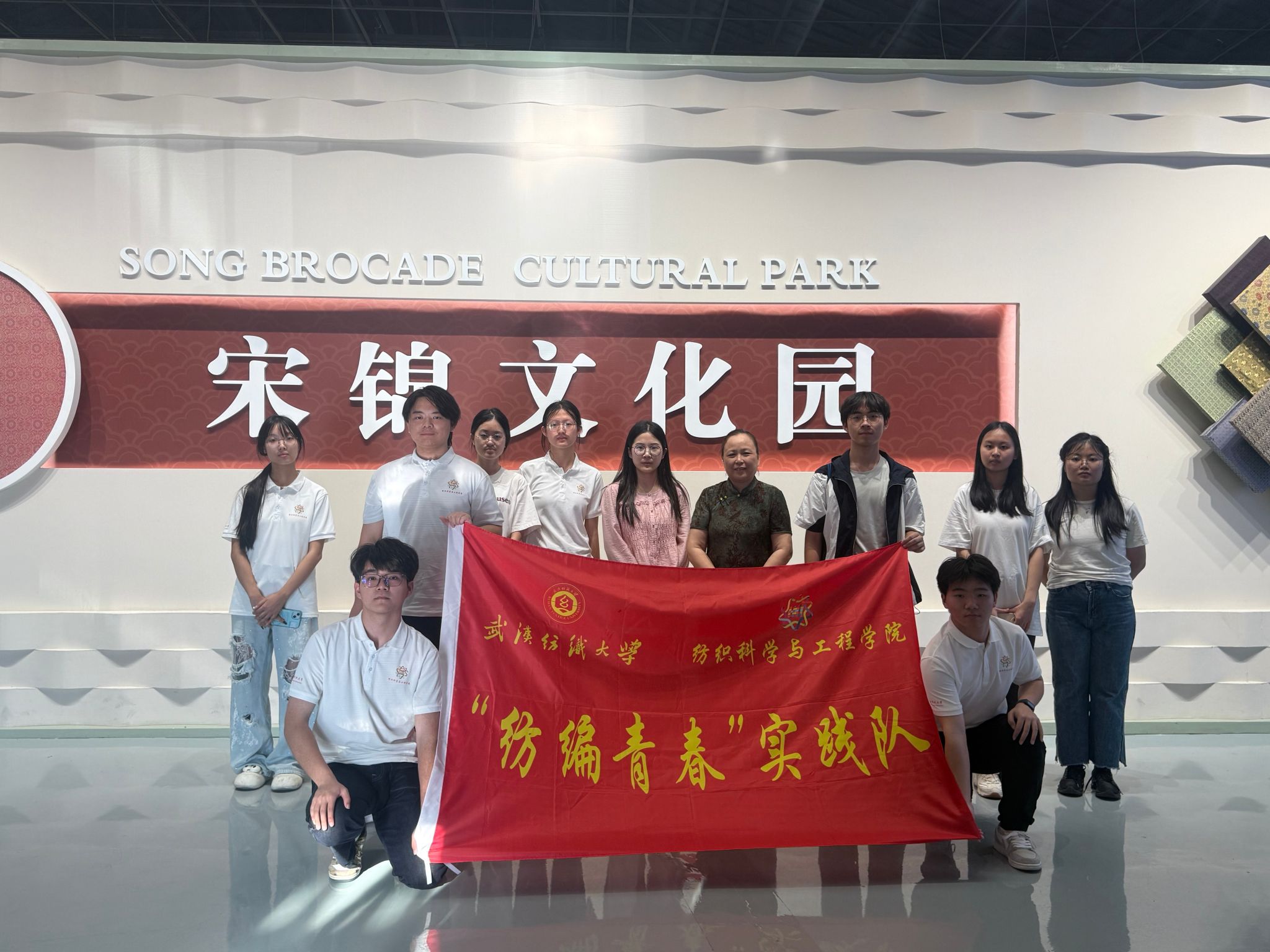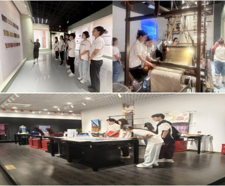 丝韵悠长,织锦流转。在中国纺织第一镇盛泽,实践团考察了国家级非遗苏州宋锦的传承与保护。实践团成员拜访了宋锦技艺的传承人朱云秀老师,并在其引导下,走进宋锦文化园,穿梭于宋锦文化展示区、宋锦织造工序展区、古木宋锦织机展示厅与上久楷展厅,欣赏了巧夺天工、精妙绝伦的宋锦艺术珍品佳作,了解了从缫丝染色到织成成品的二十多道复杂工序,领略了经久不息的中国“锦绣之冠”宋锦的魅力,见证了宋锦的创新发展。